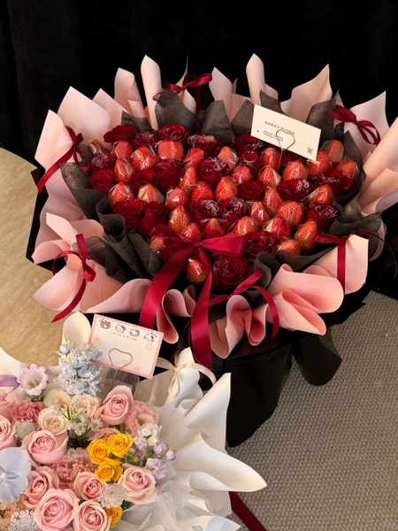 BÓ HOA DÂU TÂY MIX HOA TƯƠI - TRÁI TIM
