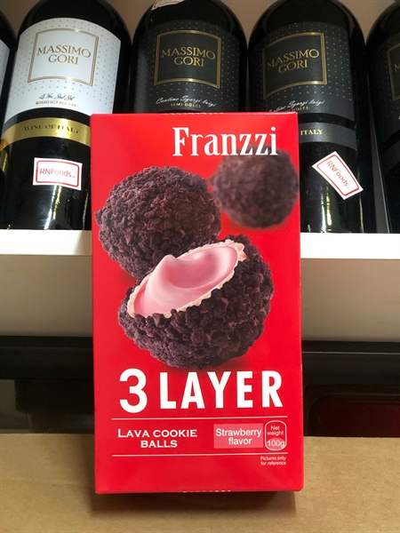 Bánh Xốp Nhân Kem Vị Dâu phủ socola - Franzzi Strawberry Flavor Lava Cookie Balls - 100gr (3 LAYER)